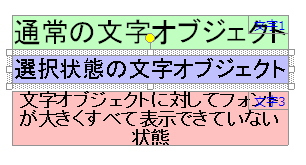 文字オブジェクト背景がピンクの場合、文字オブジェクトの枠内に文字が納まっていない場合に表示されます。